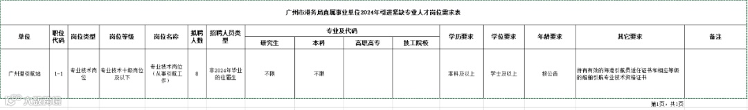 根据事业单位公开招聘相关规定,广州市港务局直属事业单位广州港引航站面向社会引进一批紧缺专业人才,公告如下: