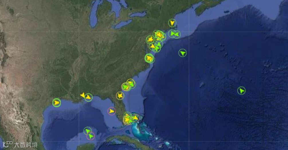 与此同时,大量进口船舶正驶向东海岸和墨西哥湾港口。大西洋一侧有75艘以上的集装箱船在途,其中包括从欧洲跨越大西洋的船只、通过加勒比海从巴拿马过来的船只,以及绕好望角过来的船只。