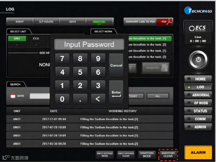 对ECS进行维修保养时, 所有动作须按以下程序通过HMI进行记录