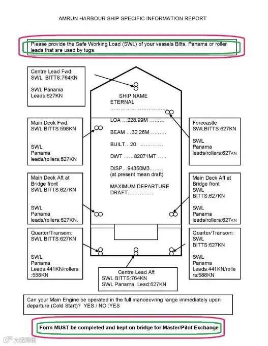 实际上,船舶靠泊澳大利亚港口,引水上船后和船长交流信息,专门会问到船舶缆桩的强度,有的船为了省事,直接打印塑封起来,和引水卡一起递给引水。