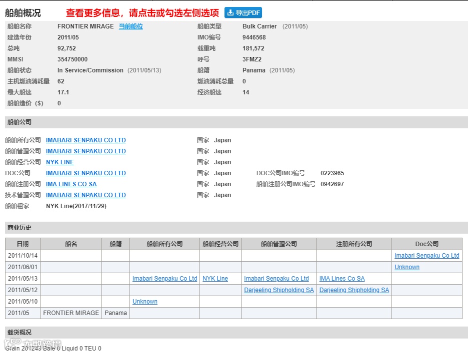 不过我们也可以从该轮的商业历史资料中看到该轮此前名为“Frontier Mirage”轮。基于长远发展考虑,宝船公司聚焦海外矿山项目运力配置方案,致力于拓展自有运力,进一步提高进口铁矿石远洋运输安全保障能力,因此在今年年初,该公司与日本邮船株式会社在新加坡就该船签署了船舶购买备忘录,购入了这艘18万吨级的大型干散货船舶。