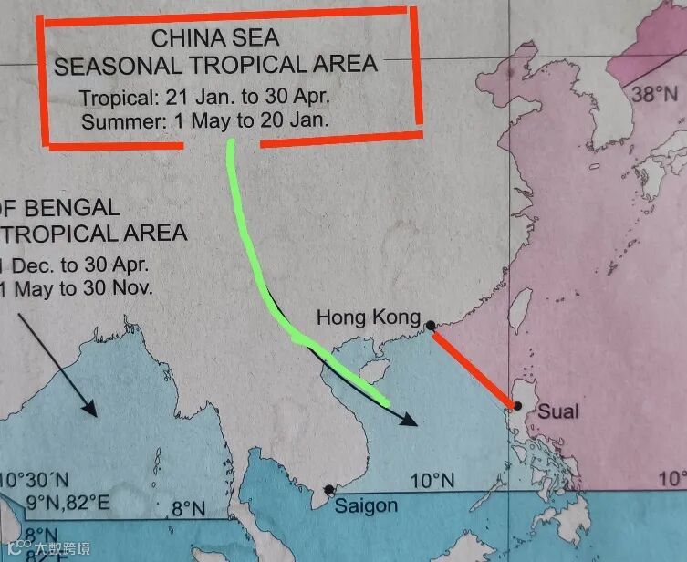 而10°北到香港之间的海域,在1月21日到4月30日属于热带,余下时间也要用夏季载重线。