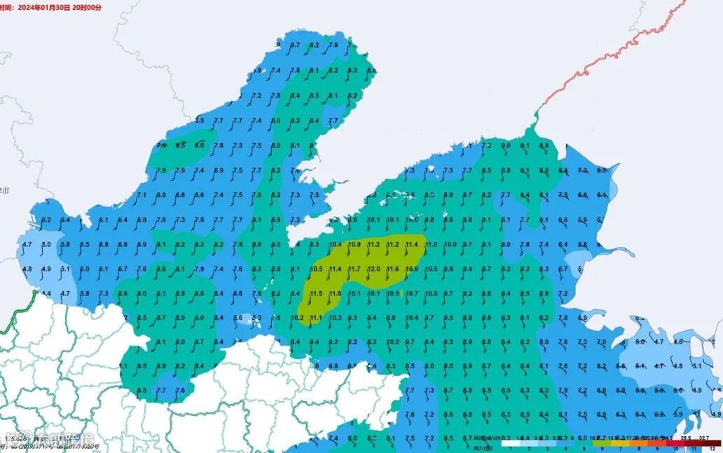 预计,30日夜间至2月1日夜间,受冷空气影响,渤海、渤海海峡、黄海大部海域、东海北部海域将先后有6~7级、阵风8级的东北到偏北风,其中渤海及黄海南部的部分海域风力可达8级、阵风9级。