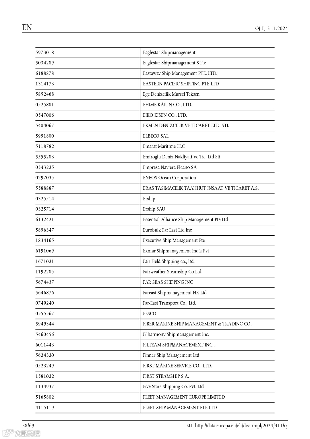 这一清单的目的是将全球涉欧盟的航运公司分配到具体的欧盟成员国中,由对应欧盟成员国的相关机构负责航运公司的配额账户的申请、监管等具体工作。