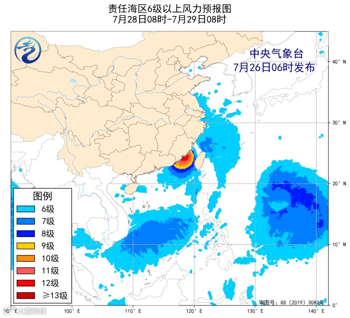 7月26日白天至28日夜间,受台风“杜苏芮”影响,东海大部海域、台湾海峡、台湾以东洋面、巴士海峡、南海南部和中东部海域、南海东北部海域将有6~8级、阵风9~10级大风,其中台湾海峡、台湾以东洋面、巴士海峡、南海东北部和中东部的部分海域风力可达9~12级、阵风13~14级,台风中心经过的附近海域风力可达13~17级、阵风17级以上。有关台风“杜苏芮”的详细信息,请参见中央气象台最新一期《台风橙色预警》。