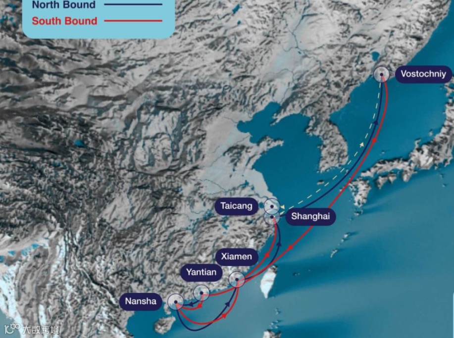 以该公司的远东-远东1(FEFE1)航线为例,该条航线主要挂靠我国的太仓、上海、厦门、盐田、南沙等港后前往俄罗斯东方港。