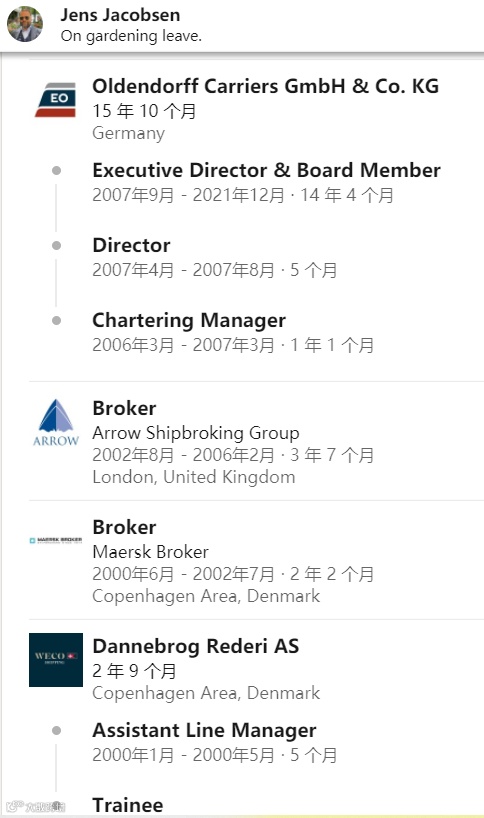 导读:知名干散货航运公司Oldendorff旗下包括一名名为Jens Jacobsen在内的多位重要老将离职,预计