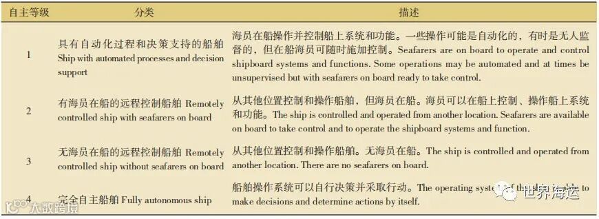 在2018年5月举行的MSC第99届会议上,IMO首次针对自主船舶的自主等级进行了定义,将其划分为