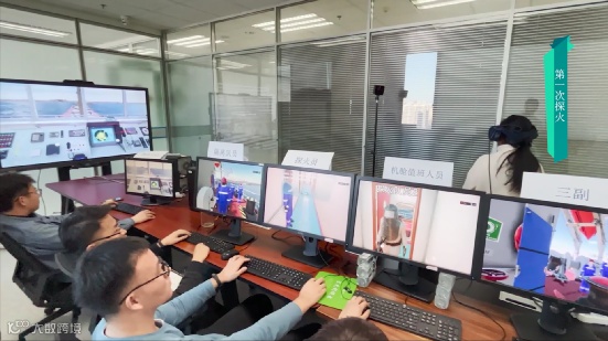 全船消防多人协同VR训练平台预设八种演练角色,船长、机舱值班人员、探火员、隔离队员、皮龙组队员、技术队员、救护队员等配合完成整个消防演练过程。当训练人员不足时,由自动角色自动完成相应任务,保证训练的完整性。每个角色根据消防应变部署内容,协同完成船舶典型消防演练。训练过程贴近真实演习,场景情节紧张、环环相扣,能有效提升船员对消防设备操作规范及火灾处置流程的掌握,提高船员的消防应变处置能力。