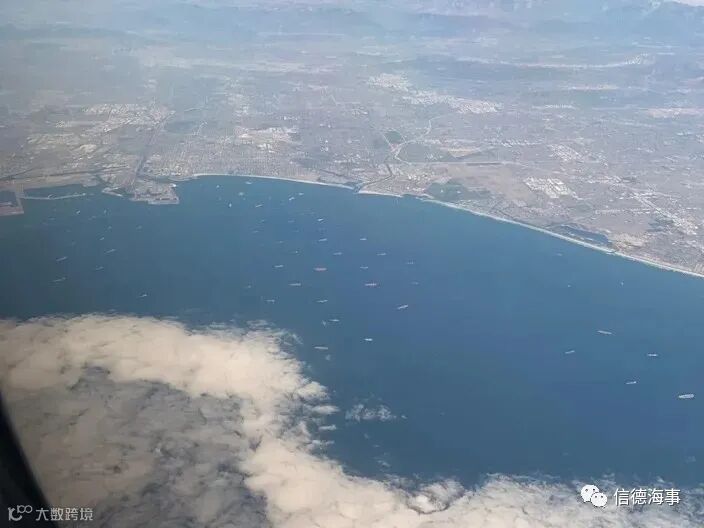 刚过去的这个周日,一位名为Sam Kirschner的乘客在一万英尺从他的飞机窗户上拍下了这张南加州附近海域锚泊船舶的照片