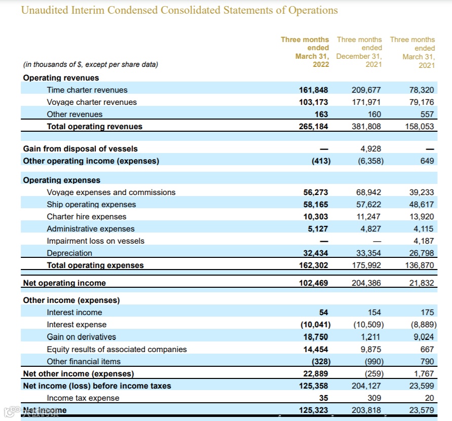 昨天干散货船舶大船东公司发布今年第一季度财报,当季收获1.25亿美元的净利润。该公司首席执行官非常兴奋的表示,“这是我们历史上最好的第一季度。”