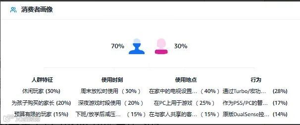 通过用户画像分析支撑后续选品决策:目标客群以休闲玩家为主,使用高峰为周末及深夜(占比50%),主要场景为居家及PC端(65%),Turbo功能使用率达30%;购买动机中“价格实惠”占50%,“兼容性”占26%。