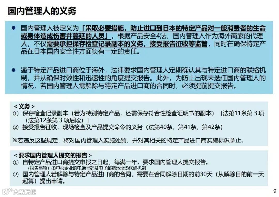 新规明确规定,海外卖家必须作为指定进口商承担直接合规责任,并须指定一名日本境内经理(当地代表)。
