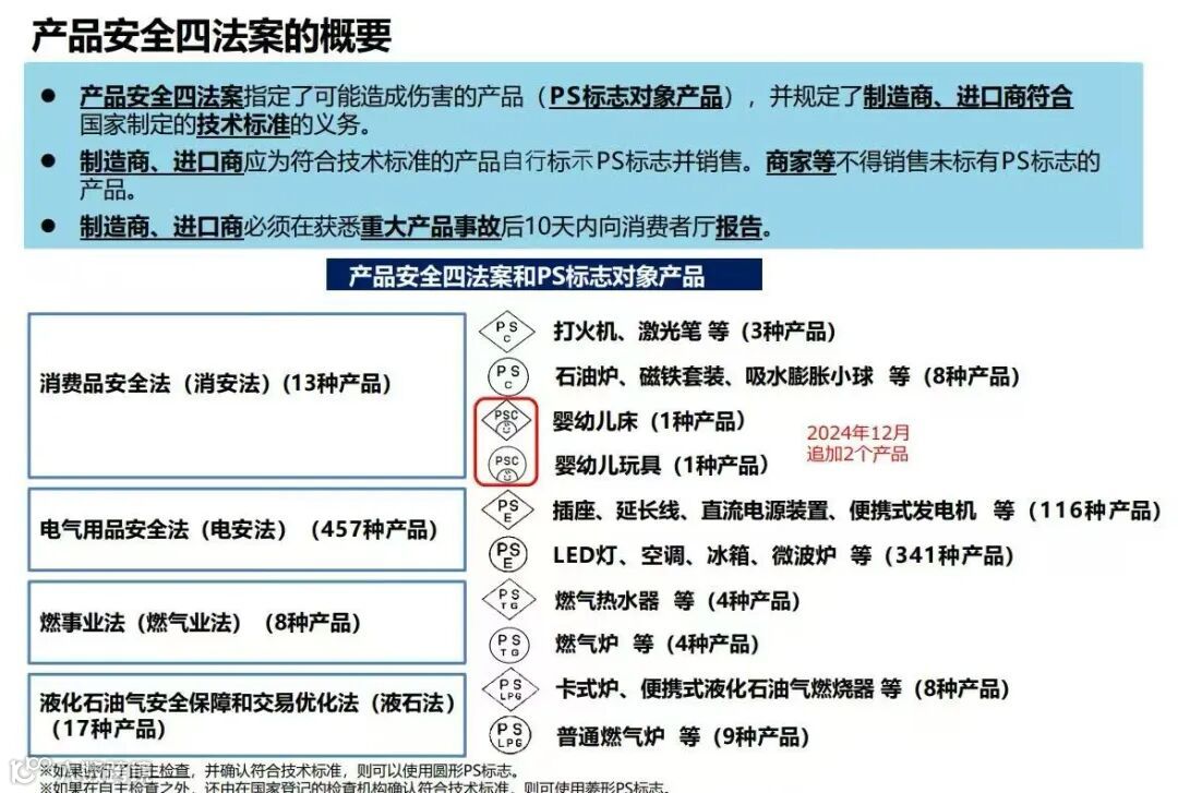 消费生活用品(消安法):13种产品,如打火机、激光笔、婴幼儿床、婴幼儿玩具(新追加)、石油炉等。