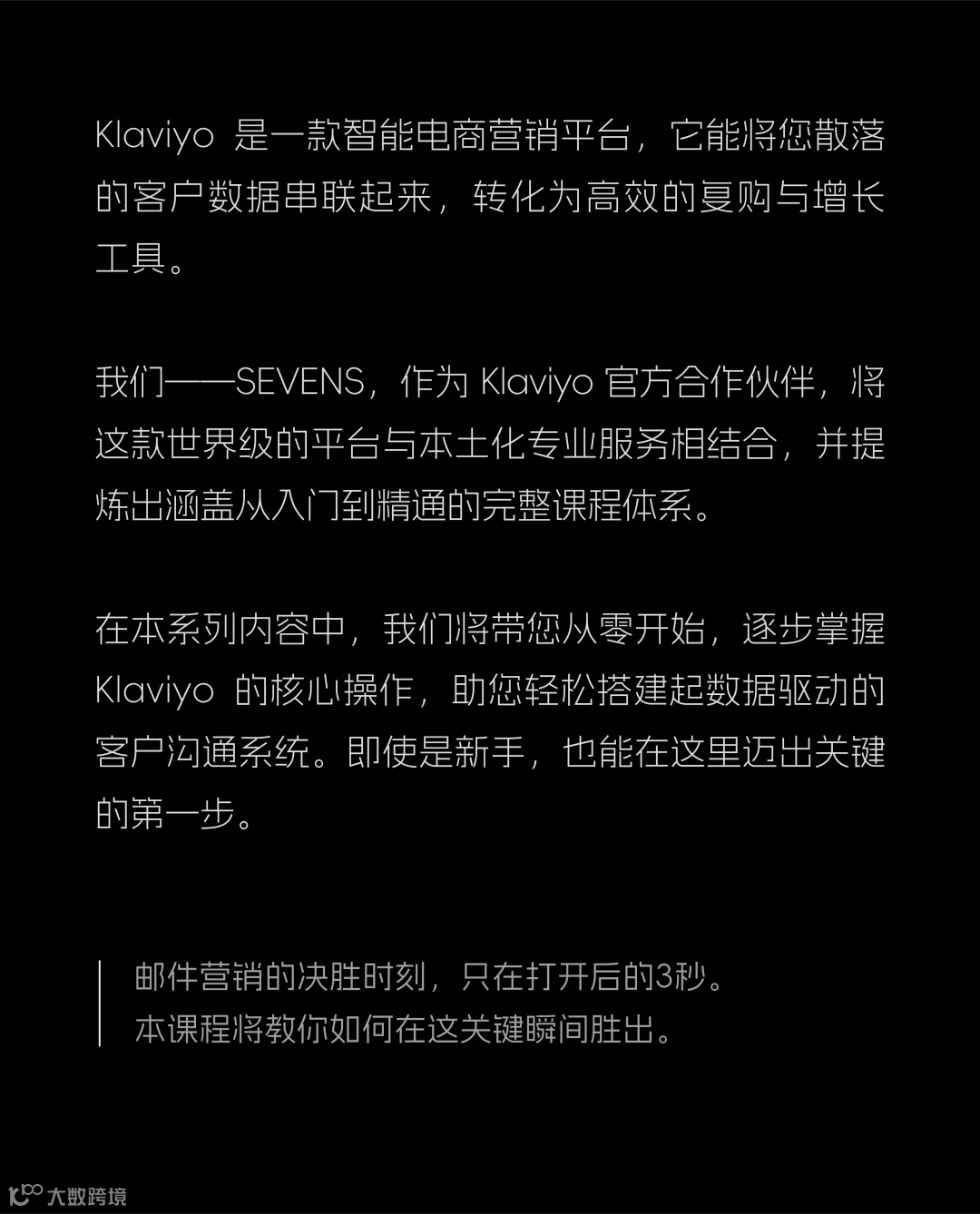 本课程围绕 Klaviyo 的核心优势——自动化,依次展开这些关键环节,并结合实际案例,帮助你理解它们在构建高转化率营销闭环中的作用。