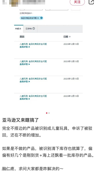 在亚马逊卖家圈子里,类似阿杰反馈不断刷屏。产品在加拿大站点刚解决误判,美国站点又接连“中招”,旺季节奏被打乱。