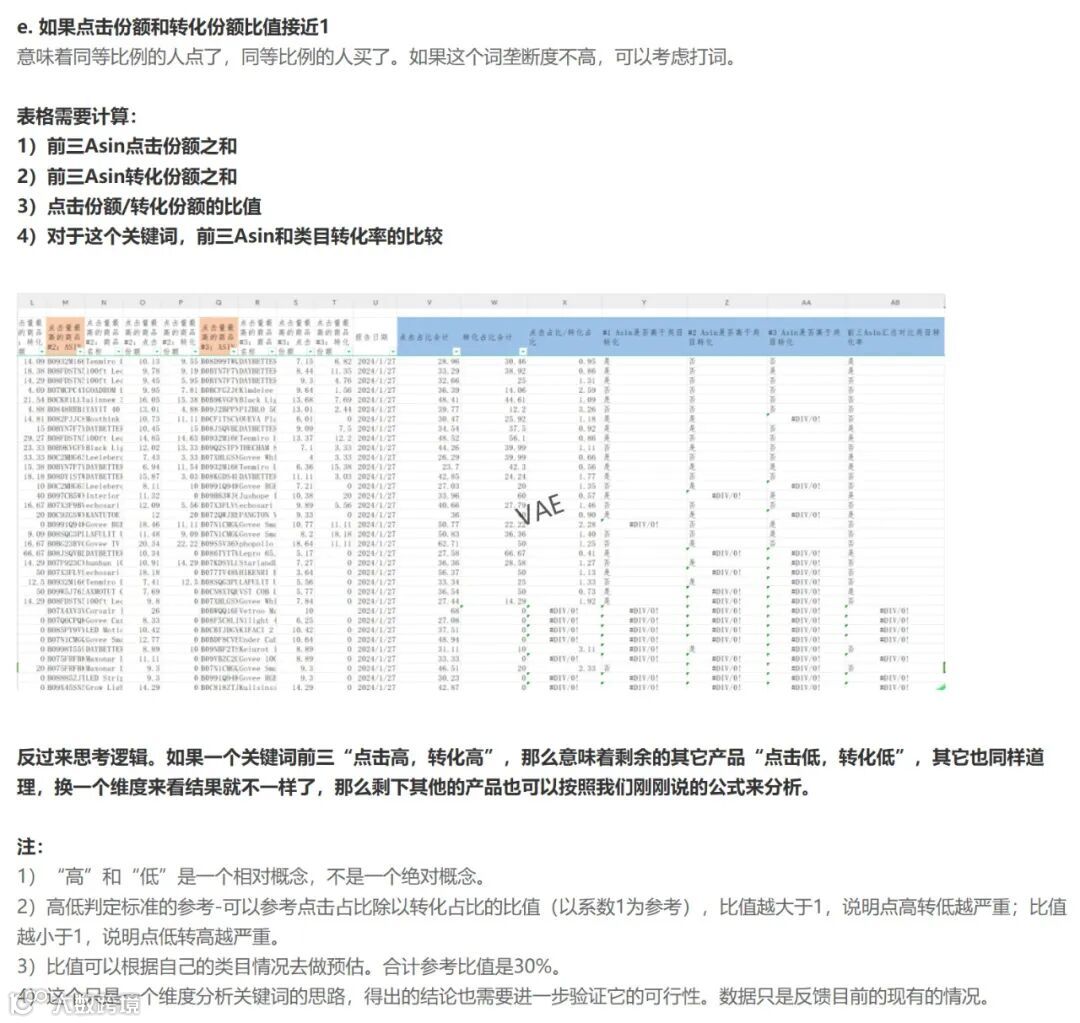 之前的ABA分析文章中,我分享过一个辅助判断的方法:通过比较ABA的点击占比和转化占比,来判断某个关键词或ASIN是否值得继续投入。这里就不展开讲了,感兴趣的朋友可以参考原文>>>