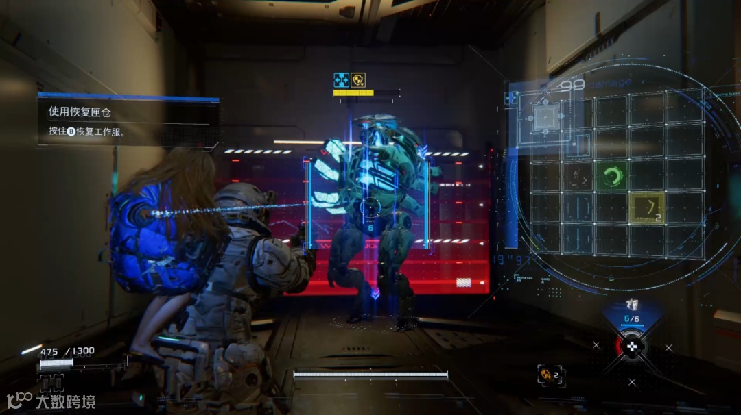 ④拉长侵入系统的时间;从侵入系统植入以来,《PRAGMATA》与其他射击游戏的逻辑就出现本质上的差异,其他射击游戏是所见即所得,抬手瞄准射击一气呵成,而本作则是一种高延迟享受的体验,玩家需要经过一到多次侵入敌人系统成功才能在最后获得射击的爽感。