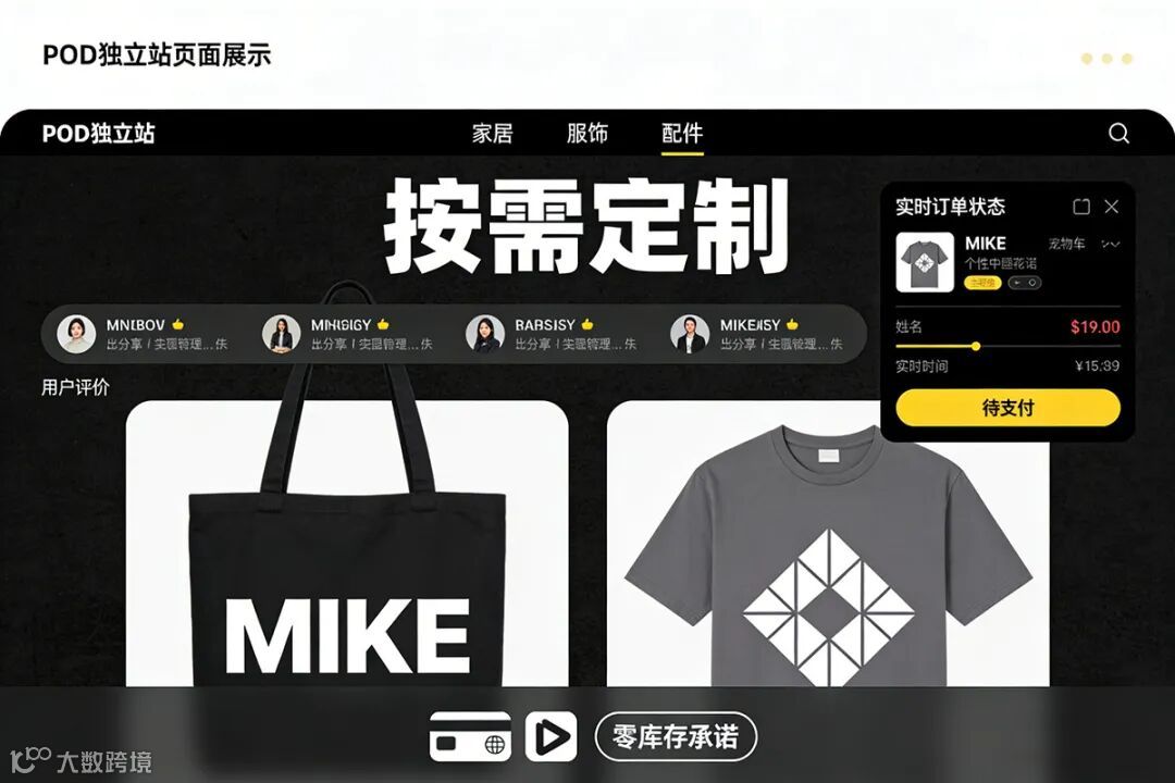 POD模式的核心逻辑很简单:消费者在你的独立站下单后,你再对接工厂进行定制生产,全程不囤一件货。这种“先有订单、后有产品”的模式,恰好精准破解了独立站的三大核心痛点。