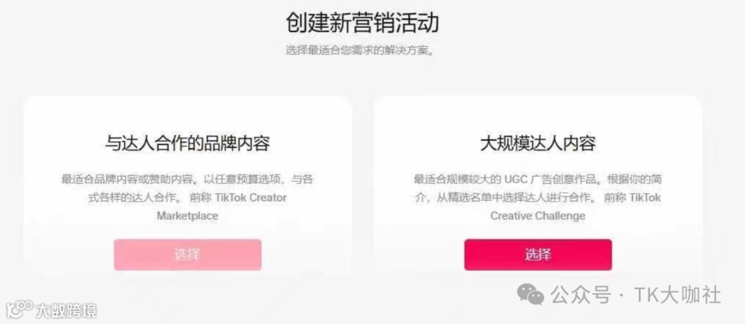 5. 选择合作类型:“与达人合作的品牌内容”或“大规模达人内容”。