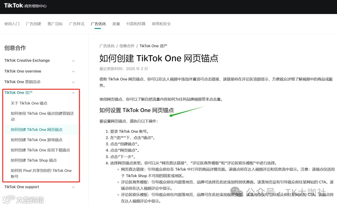 二、如何设置 TikTok One 网页锚点?