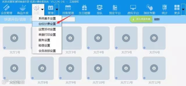 1 点击软件界面的「设置」-「台位计费设置」
