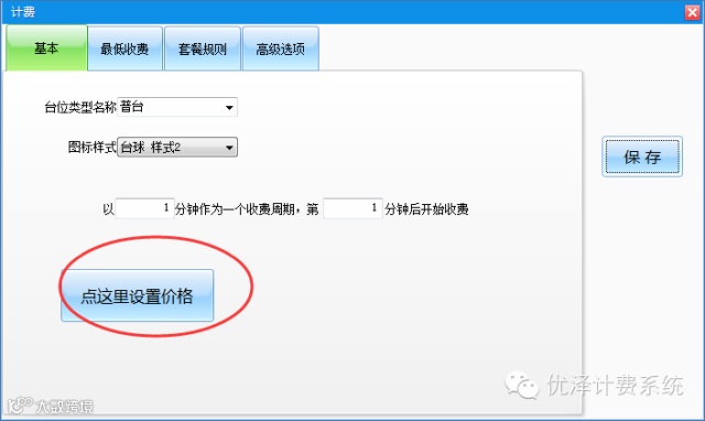 优泽计费系统1 点击软件界面的「设置」-「台位计费设置」
