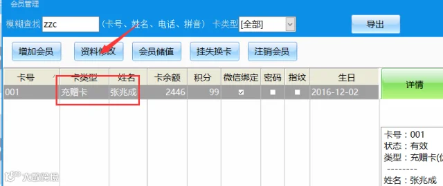 二 修改会员资料(信息、密码、卡类型、积分等)