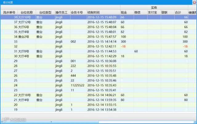注意:双击可显示小票,结账记录显示条数可在“设置”-“系统基本设置”中设置