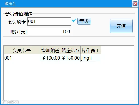 点击软件界面的「管理」- 「钱流管理」-「赠送金充值」