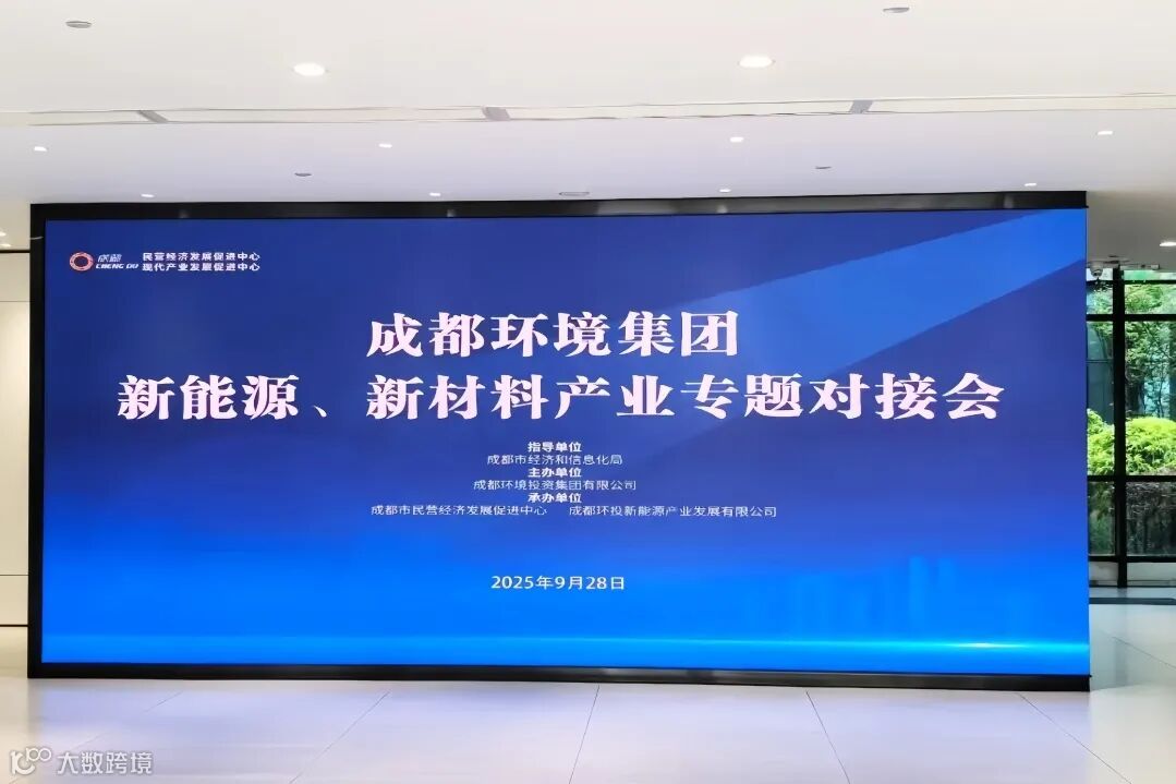 9月28日,在成都市经信局指导下,由成都环境集团主办、下属新能源公司联合成都市民营经济发展促进中心承办的“成都环境集团新能源、新材料产业专题对接会”成功举办。活动现场汇聚了通威集团、华为数字能源等50余家行业领军企业,政企研三方齐聚,共商绿色低碳产业发展大计。
