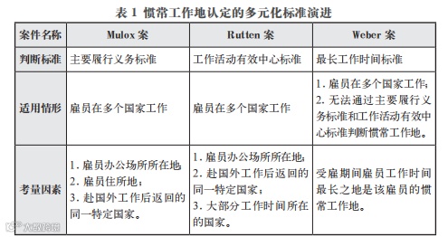 惯常工作地指雇员习惯履行义务的地点,具有可预见性强、保障平等等优势。针对跨国工作情形,欧盟法院发展出三重标准: