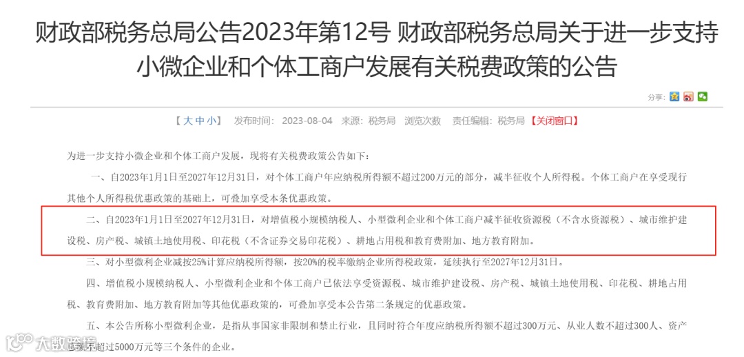 六税两费减半(资源税、城建税、房产税、印花税等):小规模纳税人仍可享受50%减免。