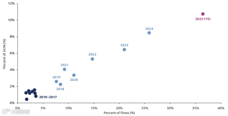 主动型ETF:灵活布局固收、私募资产替代策略及衍生品收益,2025年美国主动ETF流入470亿美元。