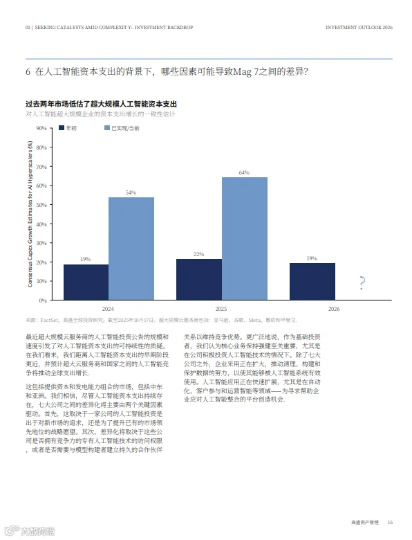 科技七巨头(Mag 7) 凭借高毛利、稳健资产负债表与终端市场韧性维持领先,但个股分化将加剧,需关注AI投资能否转化为实际回报。