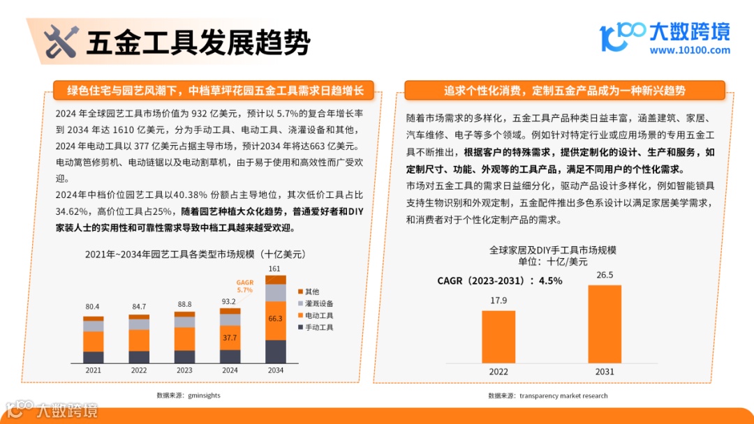 更多细分市场详细内容,请关注【大数跨境】公众号,回复【2025五金工具出海研究报告】即可免费下载完整报告查阅。