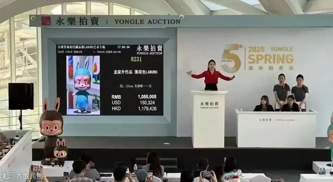 拉布布由香港艺术家龙家升(Kasing Lung)于2015年创作,现由泡泡玛特(POP MART)负责商业化运营,定位为“北欧森林中的调皮精灵”,融合“诡异”与“可爱”的冲突美学。同场拍卖中,限量15版的棕色拉布布亦拍出82万元高价,48件拍品全部成交,总成交额达372.54万元。