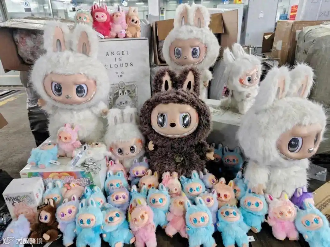 2025年4月13日,上海浦东国际机场海关在一批申报为“毛绒摆件”的出境快件中,查获600个印有“POP MART”标识的拉布布玩偶。经确认,该批货物未经授权使用品牌标识,已依法被扣留。