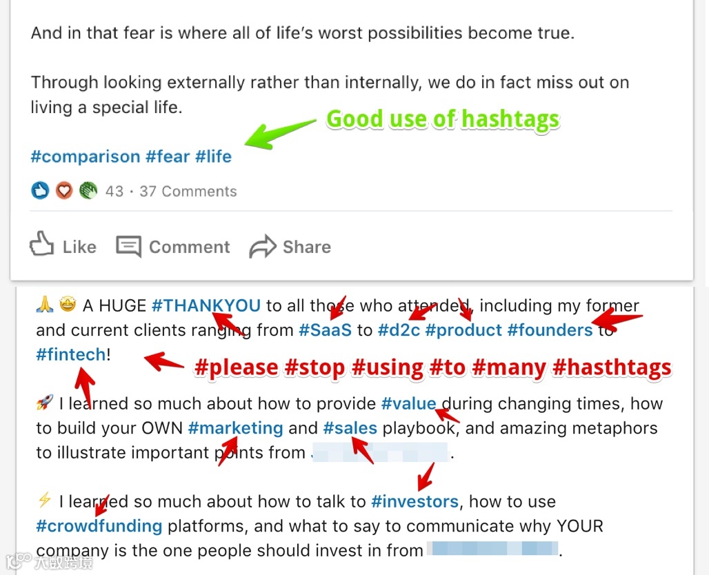 使用LinkedIn的hashtags(即“#”后面的关键词)可以让用户更好地看到你的内容。