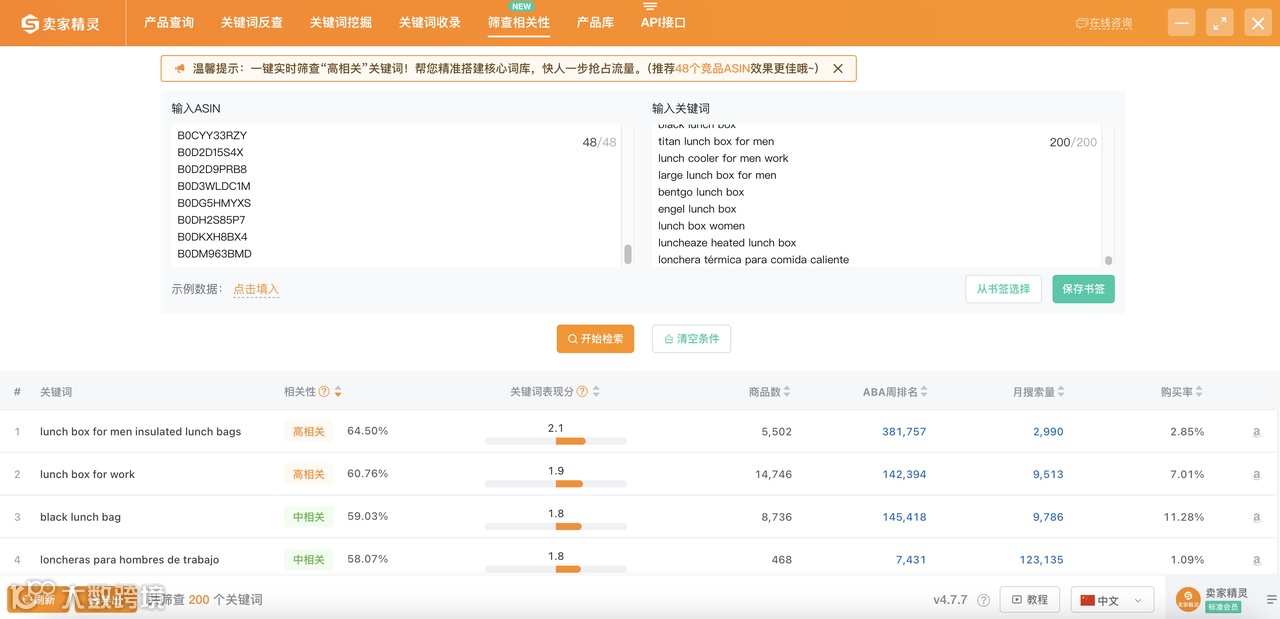 (图片来源:卖家精灵插件 > 筛查相关性)