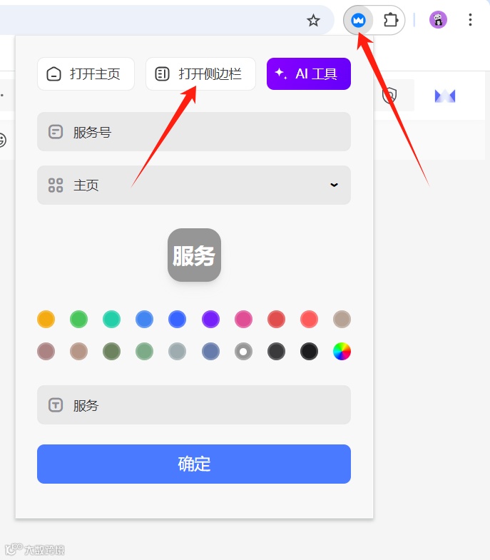 点击浏览器右上角的WeTab图标,选择“打开侧边栏”。