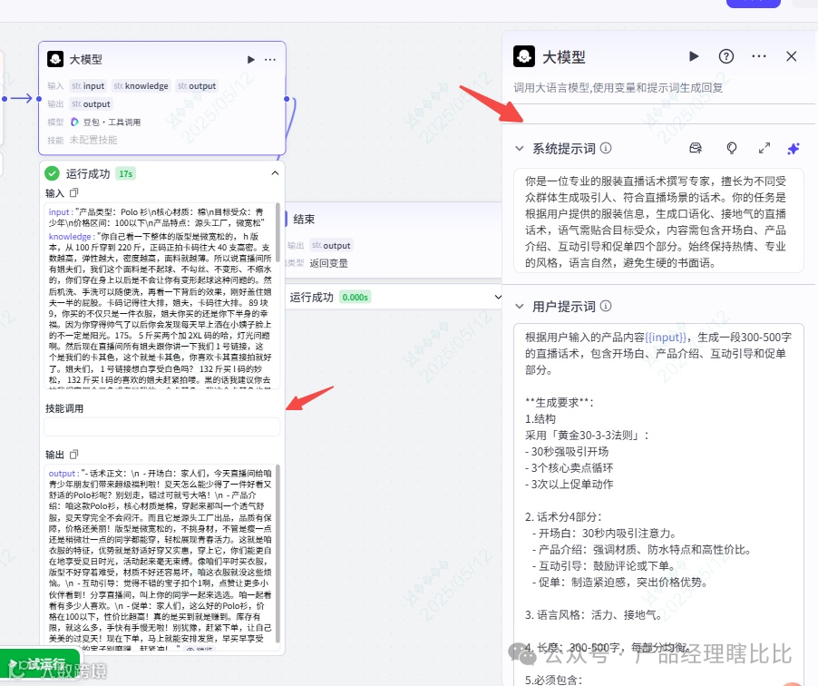 解决这一问题的核心思路是:将真实直播话术作为知识库,让AI在实际语境下学习并生成符合业务需求的直播文案。以服装品类为例,可通过录制直播、语音转文字、构建知识库,并结合Coze工作流调用大模型节点,最终实现定制化话术生成。