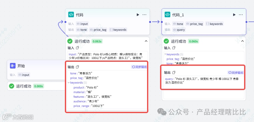 通过Coze的代码节点对输入字段进行语义增强。例如,根据“目标受众”设定语气风格:青少年对应“青春活力”,中年群体对应“稳重亲和”;价格区间则映射为“高性价比”或“高端品质”等标签。