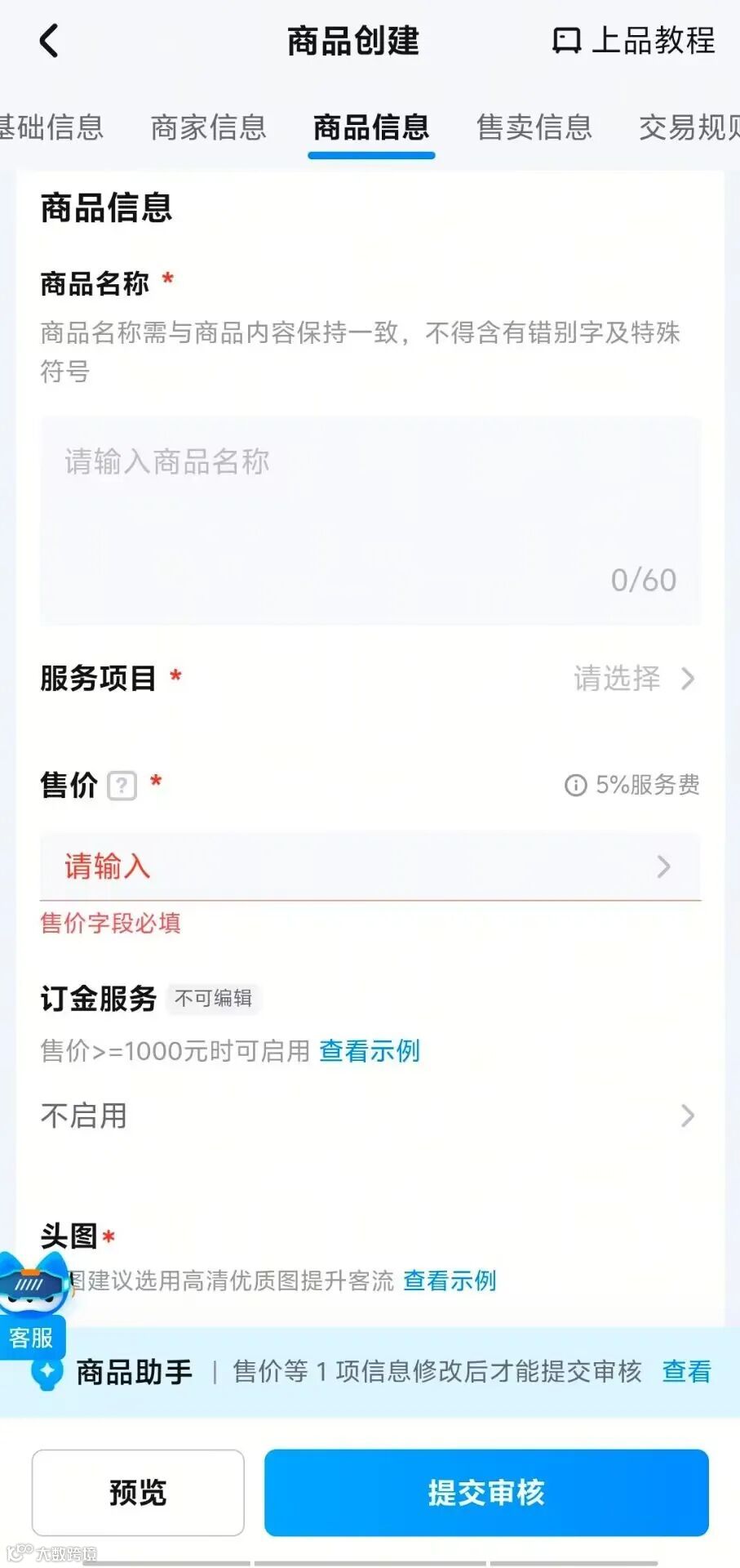 进入 “我的商品页面”,点 “创建商品”,选好品类和类型,