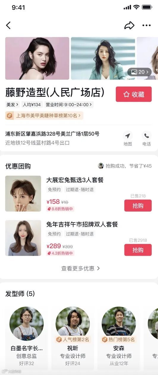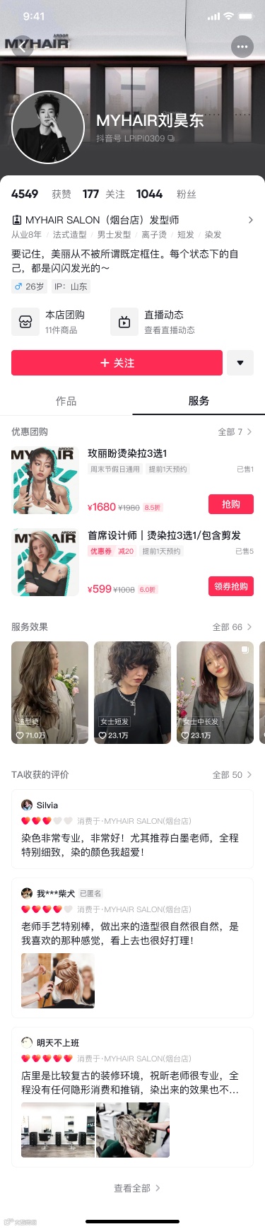 点击本店团购->查看职人所带团购 |