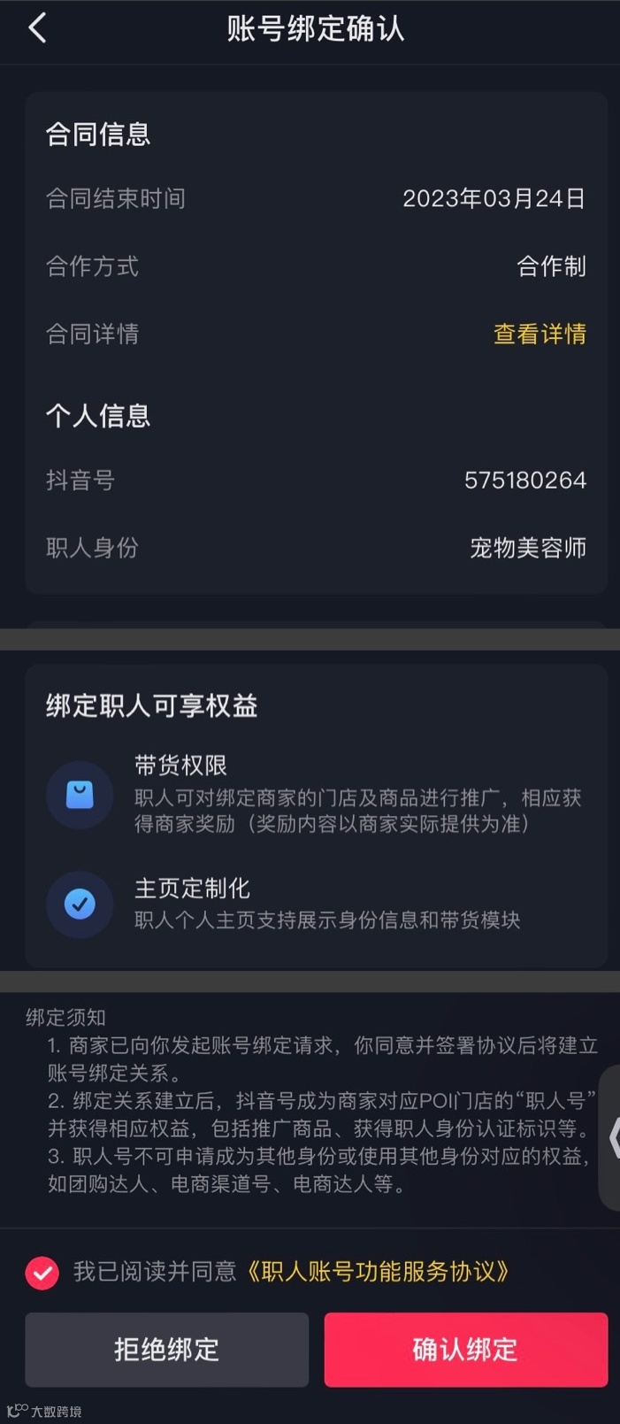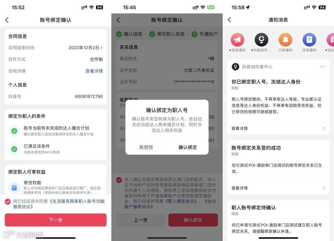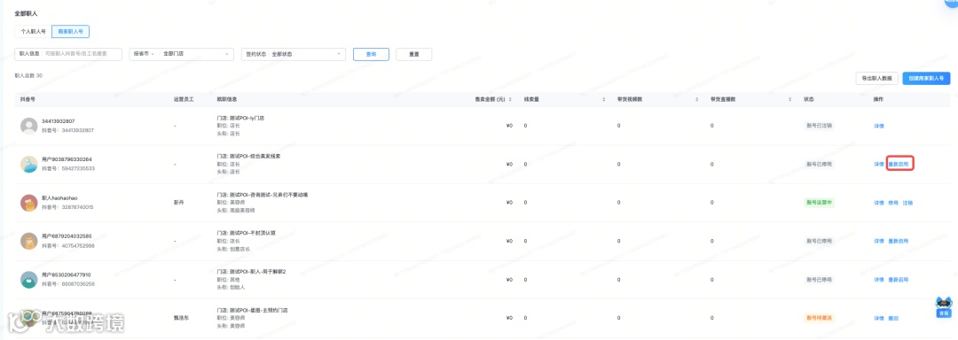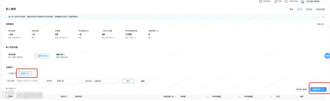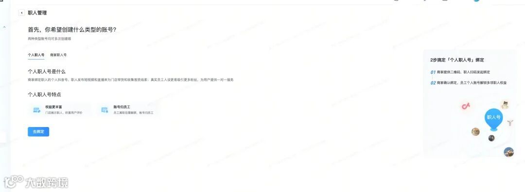 把员工个人的抖音号绑定为职人号(和员工个人账号建立合作关系,职人号仍然归员工个人所有) |