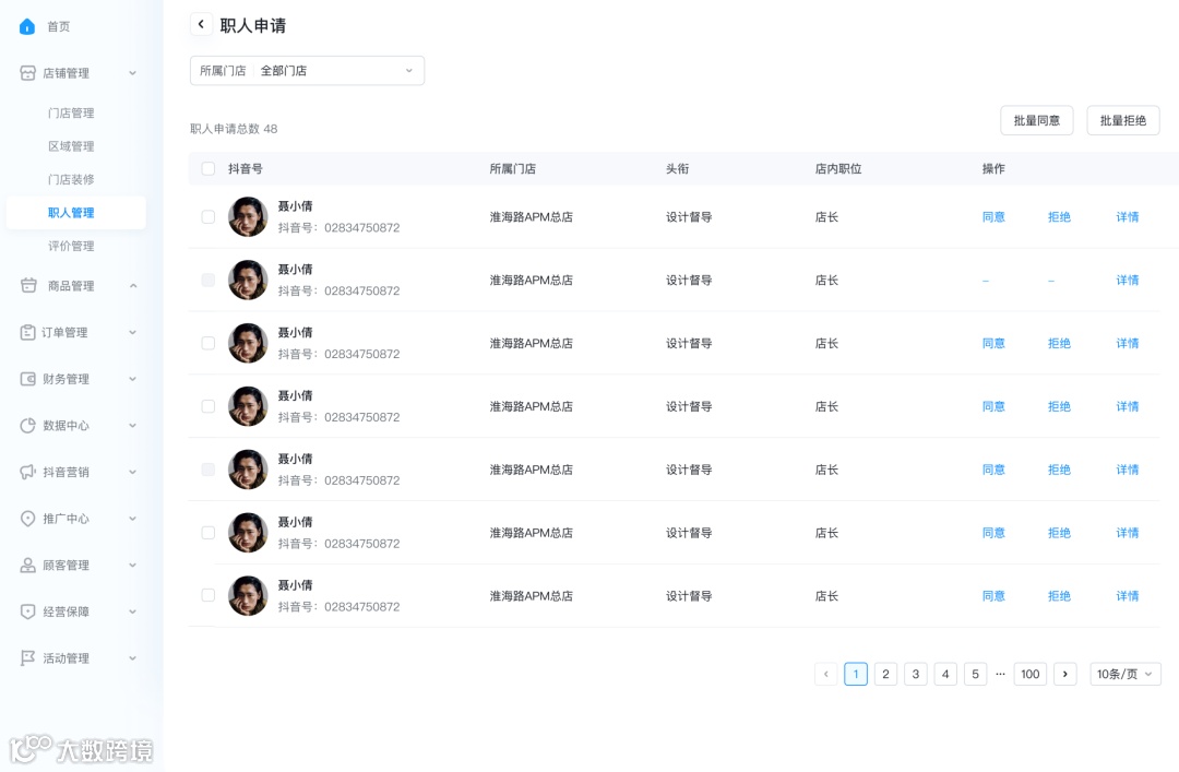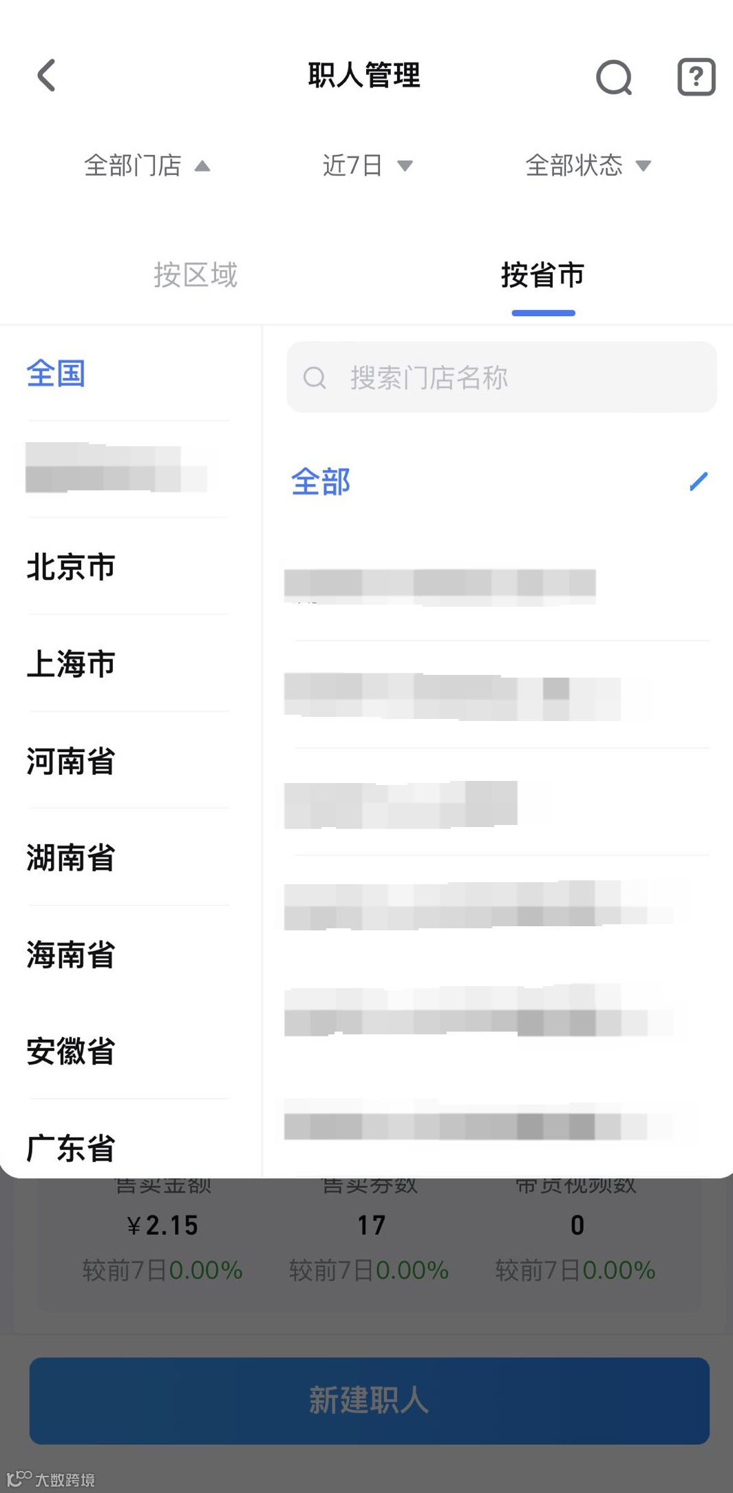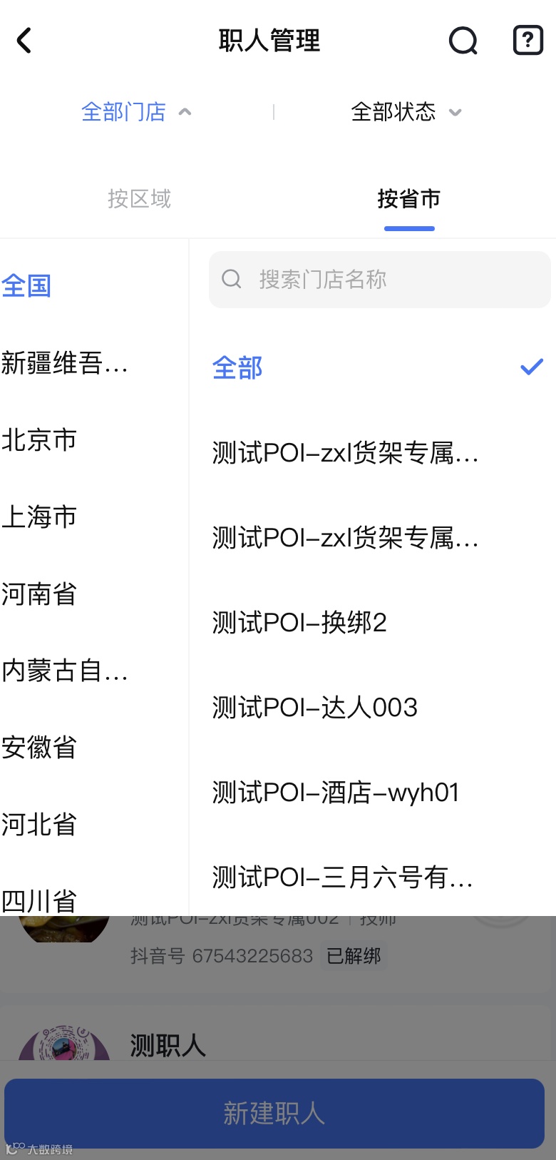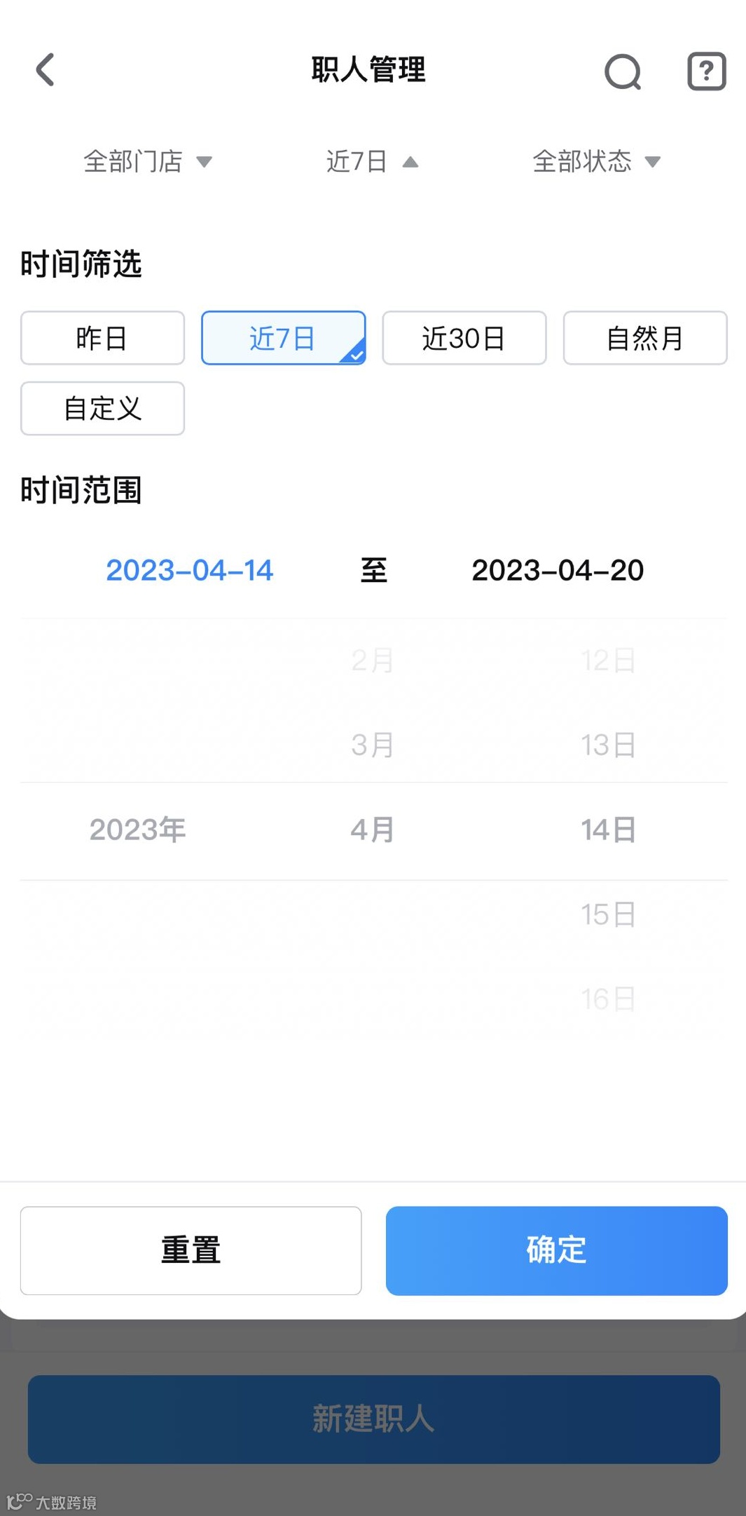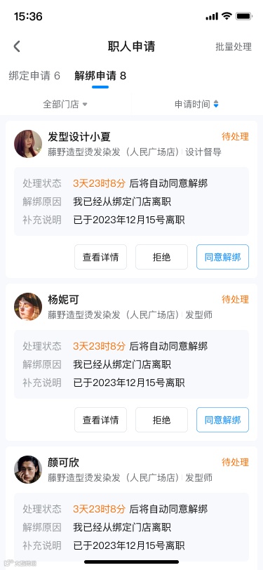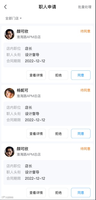 支持按门店、时间、职人状态进行筛选: |