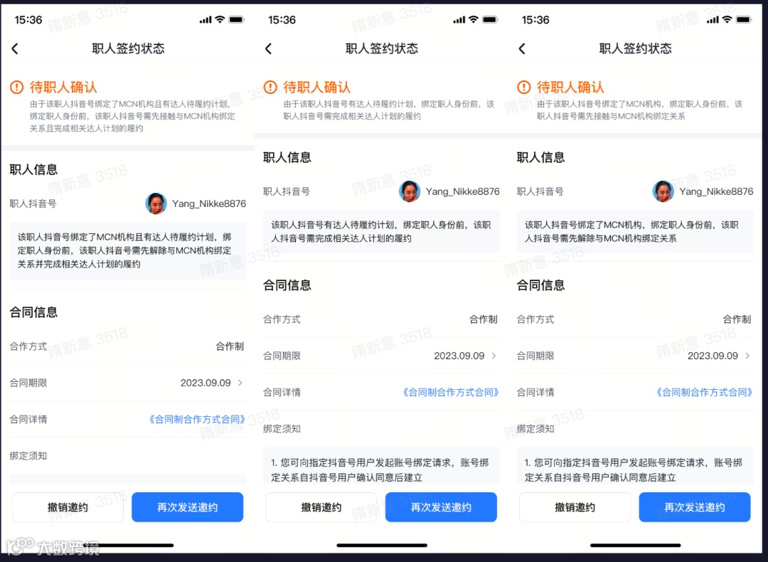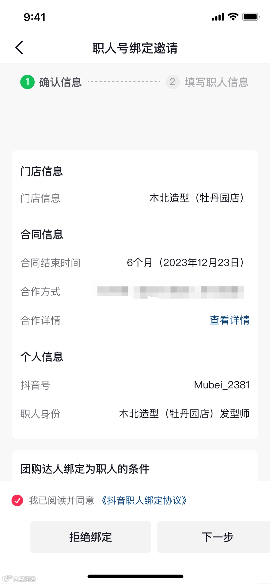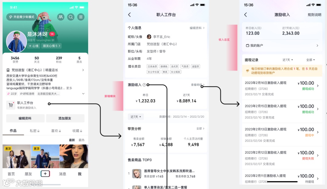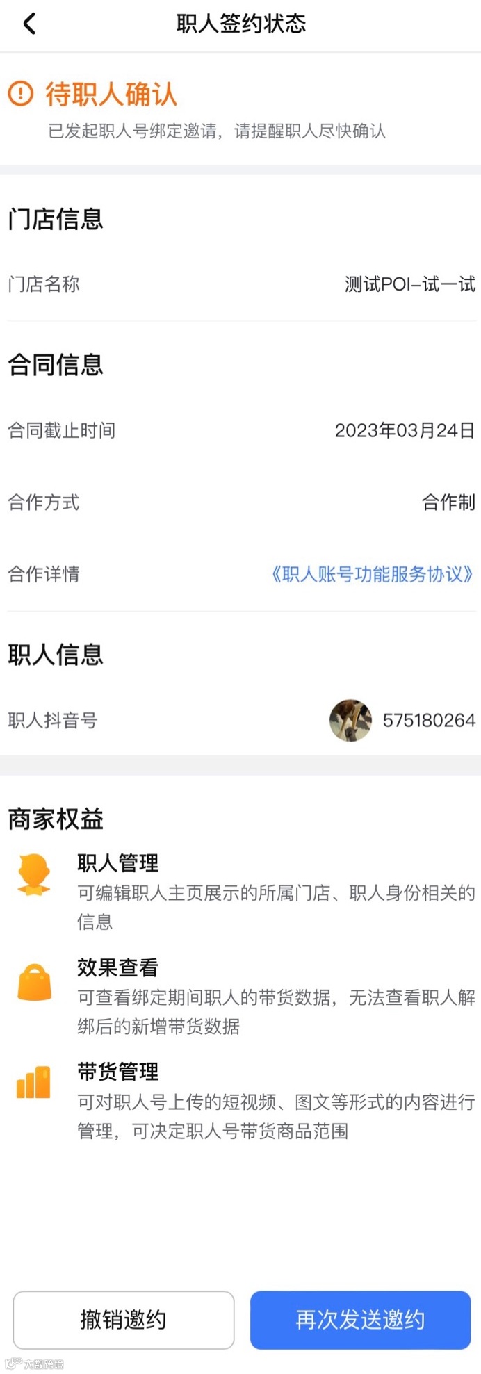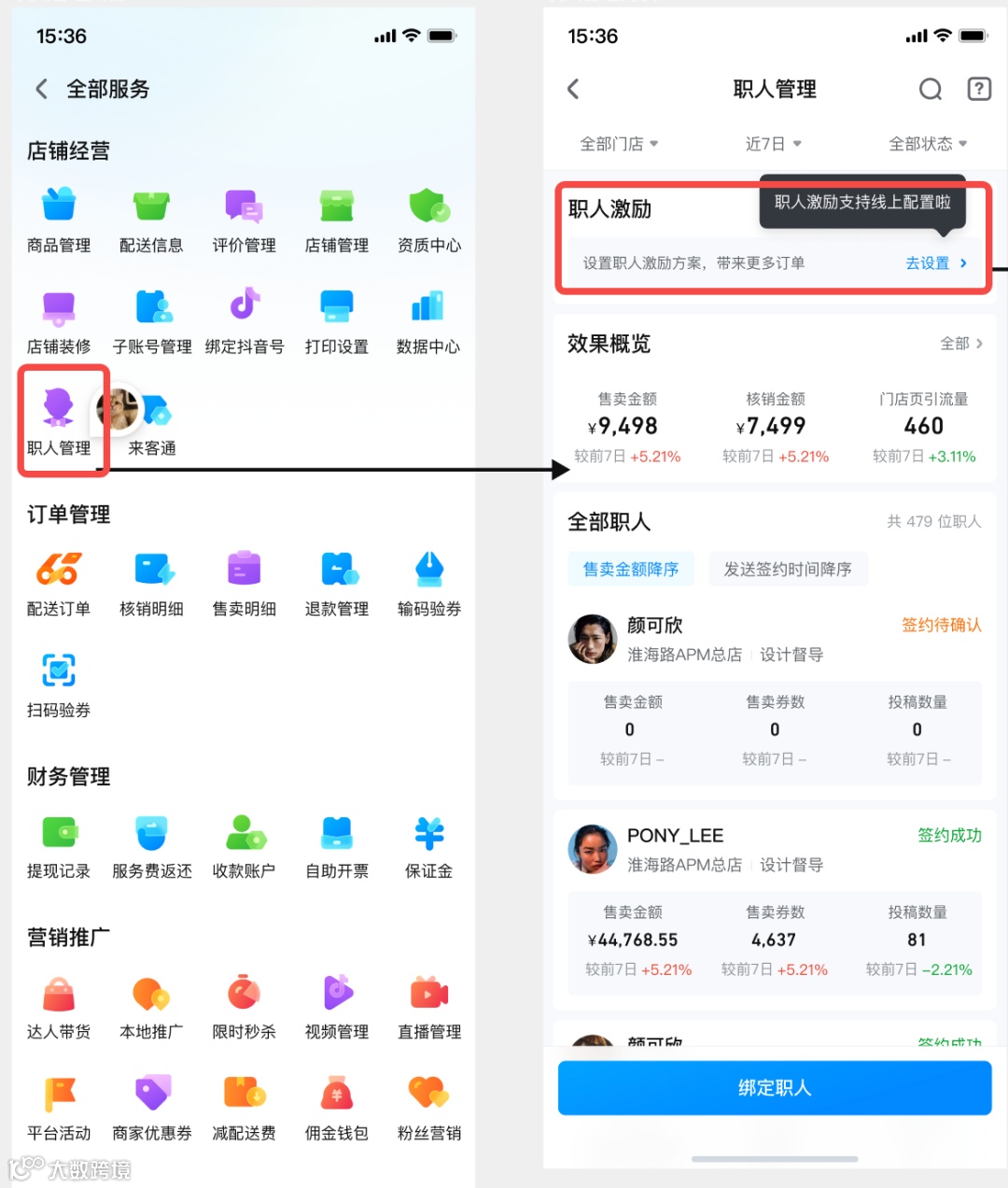 ① 收集职人账号,商家填写信息并邀请员工绑定,员工在抖音端收到通知、确认绑定 |