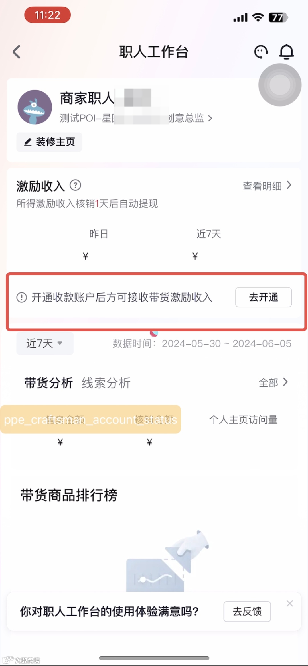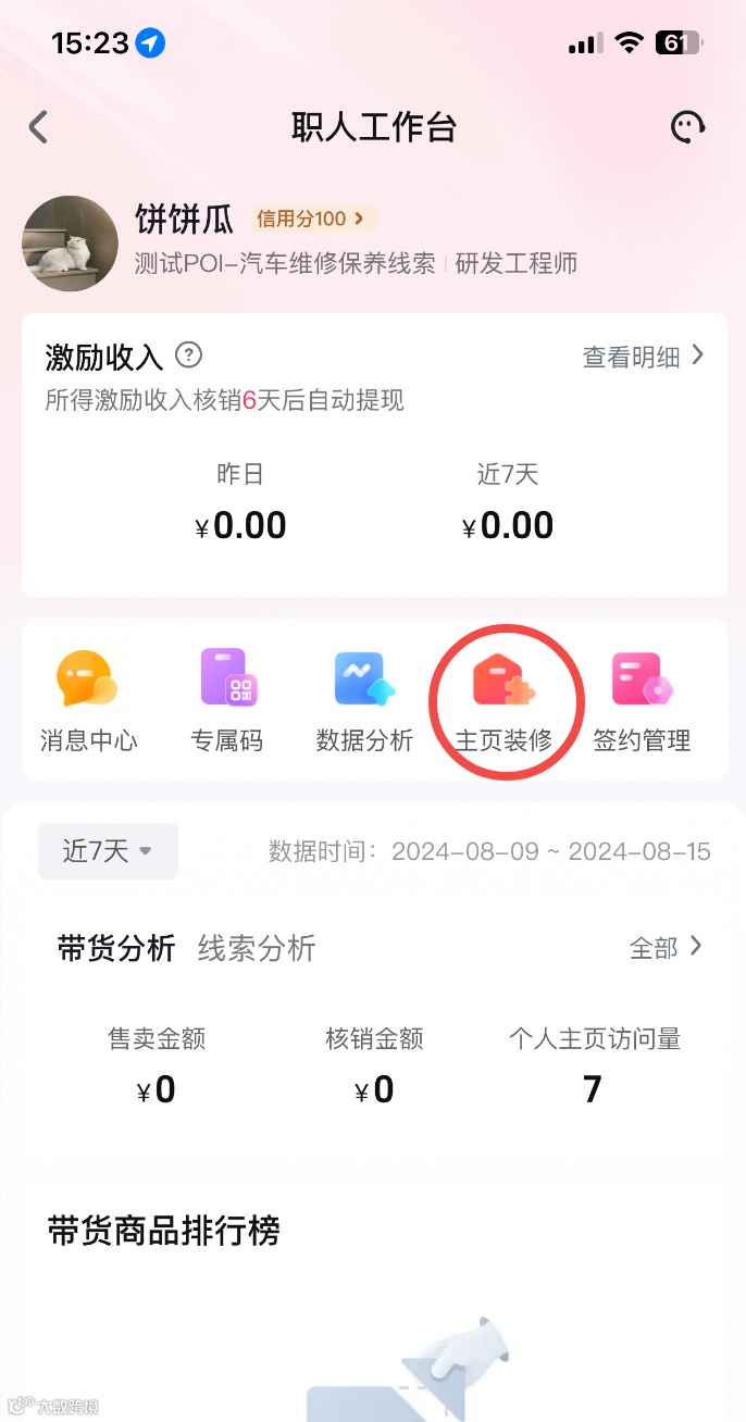 进入职人工作台,首屏后可查看激励收入 |