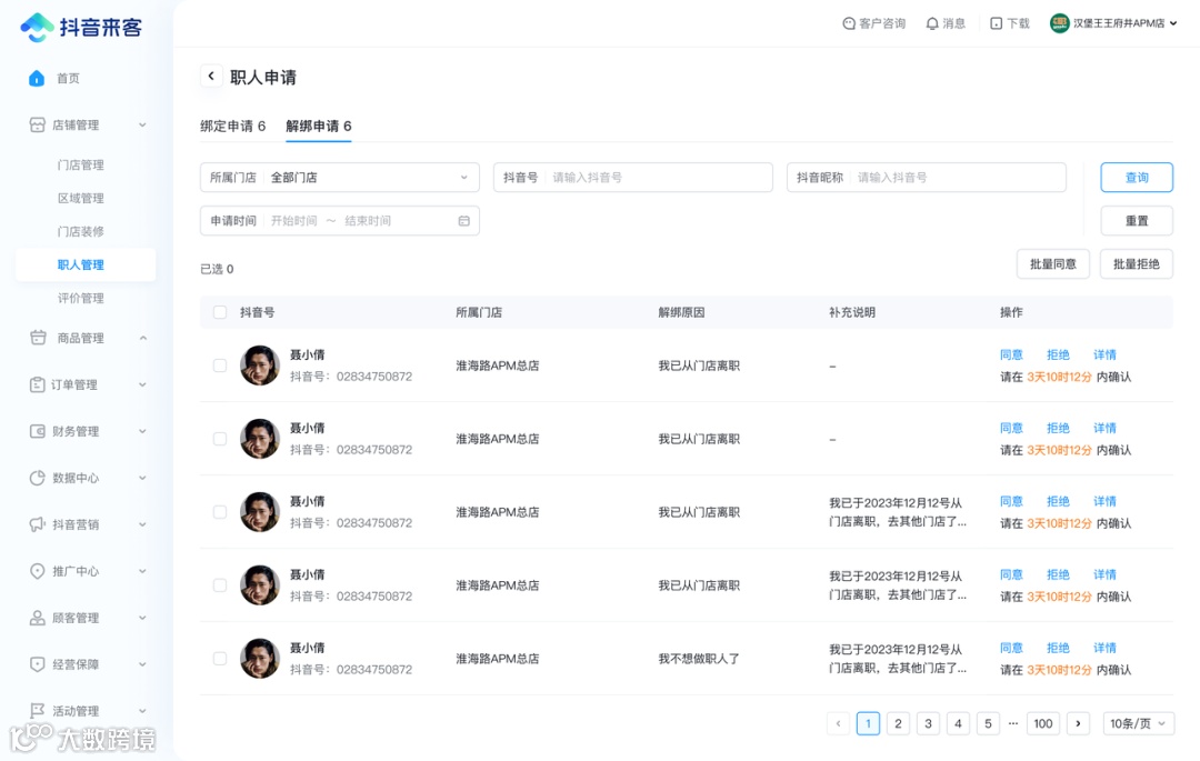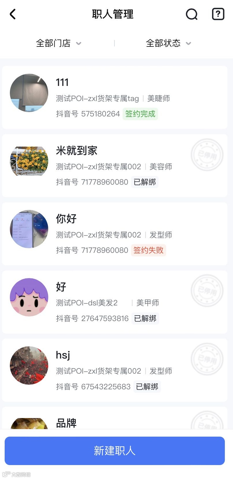 商家职人号由商家创建、归商家所有,员工离职后可换绑新员工 注意:商家职人号的认证不会影响员工的个人抖音号(一张身份证,可同时认证个人号和商家职人号) |